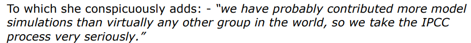 “we have probably contributed more model simulations than virtually any other group in the world, so we take the IPCC process very seriously.” (2013). Detail here.